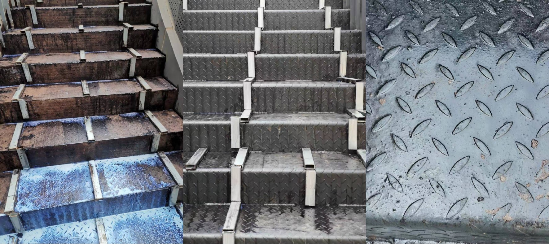 銹蝕轉換劑形成的高分子復合結構薄膜具有較強的防銹效果,裸露空氣中防銹期2年。對面漆兼容性好,水性漆、油性漆,混凝土澆筑均不影響性能。