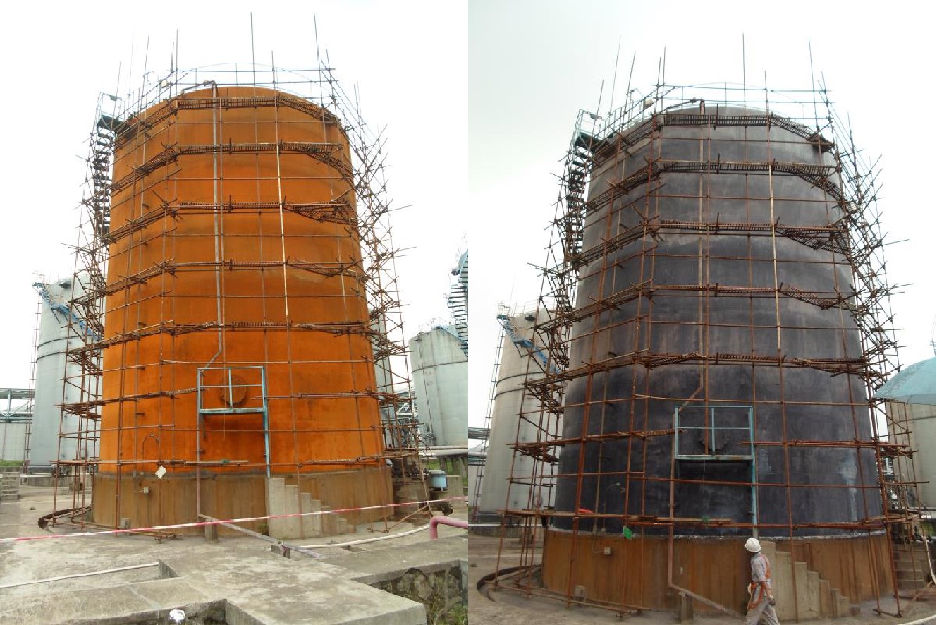 1、用高壓水、鋼刷等去除金屬表面的銹疙瘩、灰塵、油及污漬,帶銹帶漆施工,表面不可有積水;